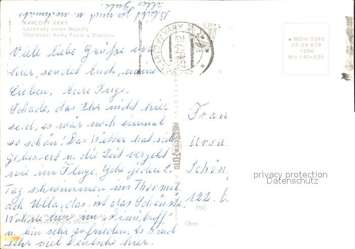 old postcard Karlovy Vary Nejedly postalisch gelaufen Erhaltung siehe scans