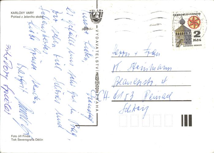 old postcard Karlovy Vary Pohled z Jeleniho skoku postalisch gelaufen Erhaltung siehe scans