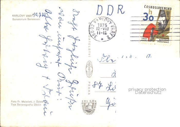 old postcard Karlovy Vary Sanatorium Sanssouci postalisch gelaufen Erhaltung siehe scans