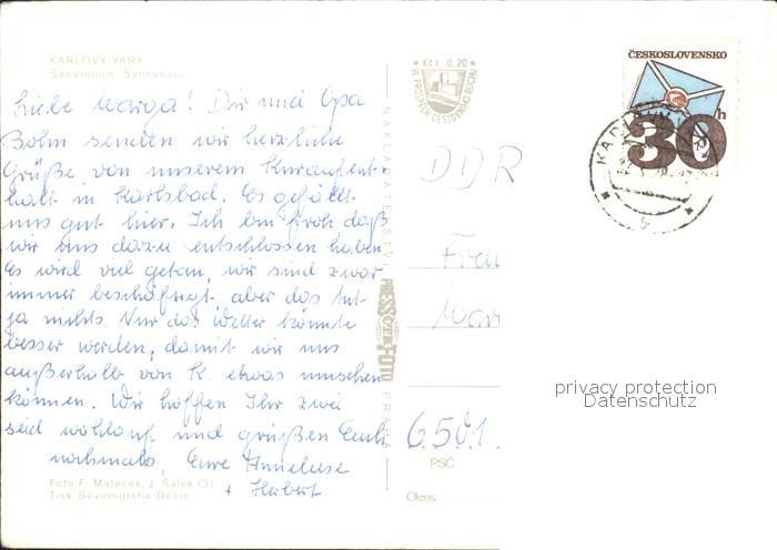 old postcard Karlovy Vary Sanatorium Sanssouci postalisch gelaufen Erhaltung siehe scans