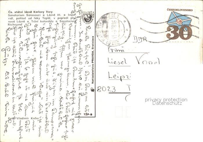 old postcard Karlovy Vary Sanatorium Sanssouci Richmond postalisch gelaufen Erhaltung siehe scans