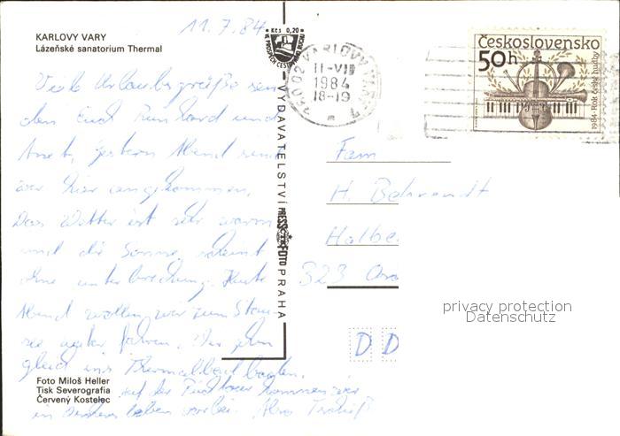 old postcard Karlovy Vary Sanatorium Thermal postalisch gelaufen Erhaltung siehe scans