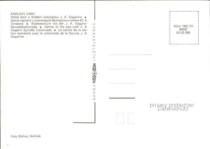 Karlovy Vary Stadtzentrum Gagarin Sprudelkolonnade postalisch nicht gelaufen Erhaltung siehe scans