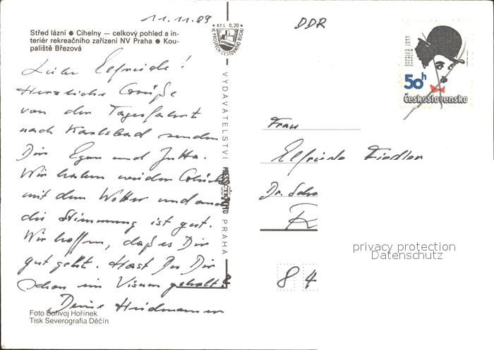 old postcard Karlovy Vary Stred Lazni Restaurant Kirche Strand postalisch gelaufen Erhaltung siehe scans