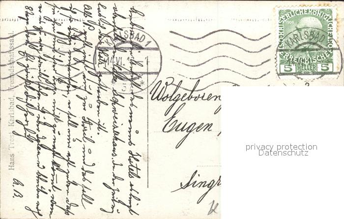 31739860 old postcard Karlsbad Eger postalisch gelaufen Erhaltung siehe scans KatCode: 11520
