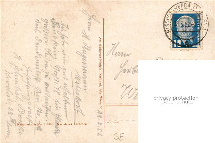 old postcard Karlsbad Eger Am Muehlbrunnen postalisch gelaufen Erhaltung siehe scans [WerneD78]