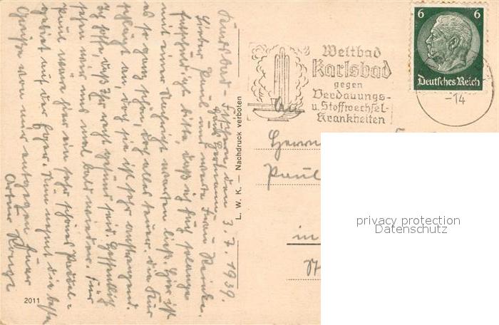 old postcard Karlsbad Eger Blick zum Schlossberg postalisch gelaufen Erhaltung siehe scans [WerneD78]