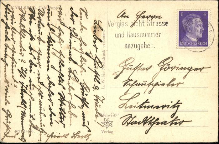 old postcard Karlsbad Eger Cafe Pupp postalisch gelaufen