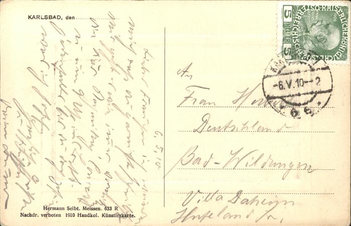 Karlsbad Eger Elisabethbad handkolorierte Künstlerkar