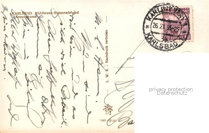 old postcard Karlsbad Eger Fliegeraufnahme Muehlbrunn-Kolonnade und Kreuzstrasse postalisch gelaufen Erhaltung siehe scans [LiesaD40]