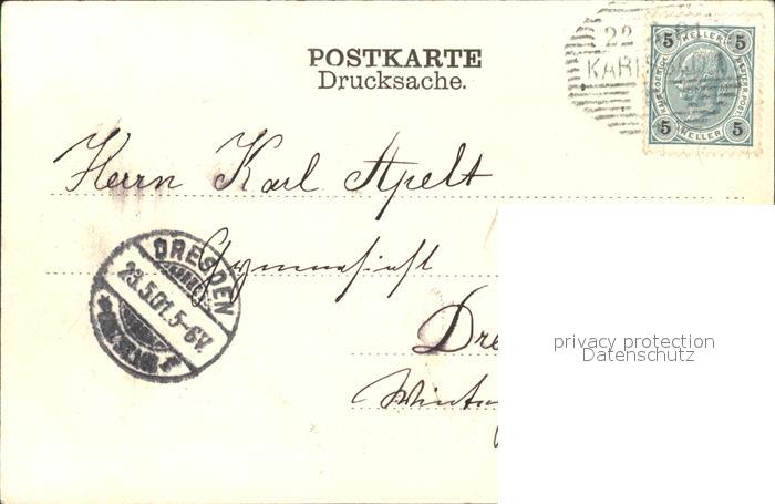 31735603 old postcard Karlsbad Eger Fruehpromenade Muehlbrunncolonnade postalisch gelaufen Erhaltung siehe scans KatCode: 11520