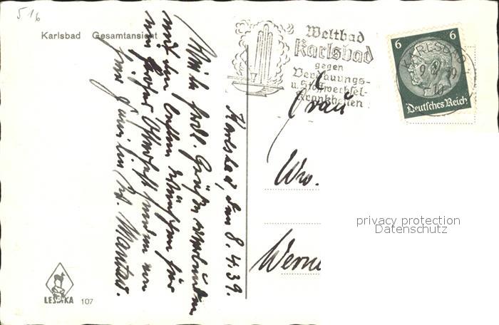 old postcard Karlsbad Eger Gesamtansicht postalisch gelaufen Erhaltung siehe scans