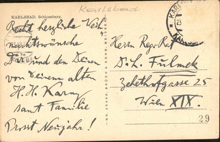 old postcard Karlsbad Eger Karlsbad Schlossberg postalisch gelaufen