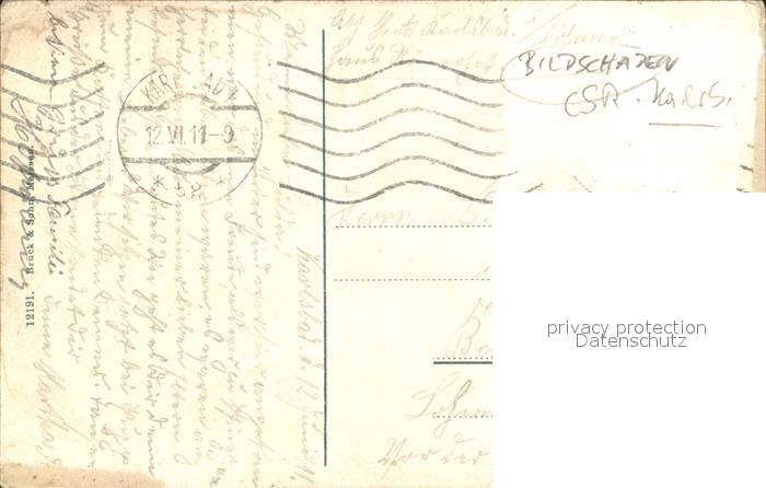 old postcard Karlsbad Eger Kirche Teich postalisch gelaufen Erhaltung siehe scans
