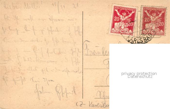 old postcard Karlsbad Eger Marktbrunnen postalisch gelaufen Erhaltung siehe scans [WerneD78]