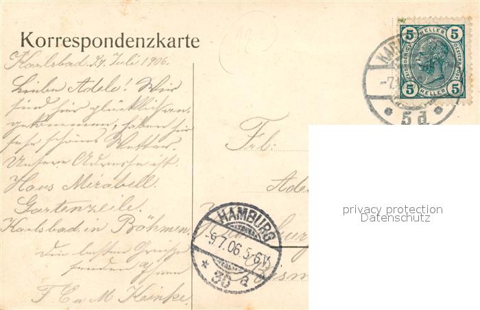 old postcard Karlsbad Eger Partie bei Cafe Schoenbrunn postalisch gelaufen Erhaltung siehe scans [WerneD78]