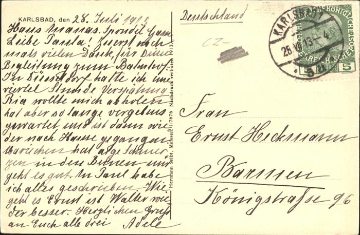 old postcard Karlsbad Eger Schlossbrunnen postalisch gelaufen gute Erhaltung