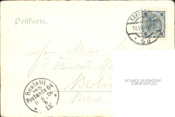 old postcard Karlsbad Eger Sprudelkolonnade Katholische Kirche postalisch gelaufen Erhaltung siehe scans