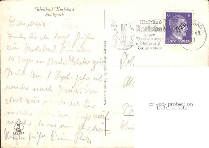 old postcard Karlsbad Eger Stadtpark NZ3 postalisch gelaufen Erhaltung siehe scans