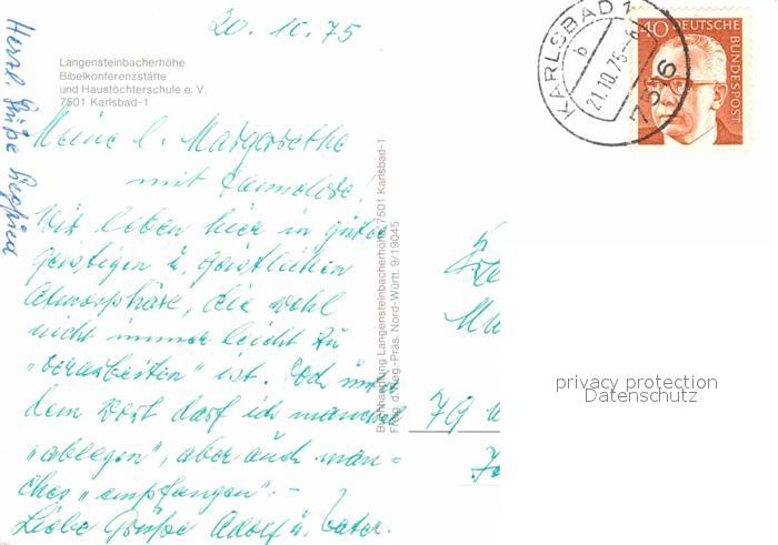 72871311 alte Postkarte Karlsbad Karlsruhe Fliegeraufnahme Langensteinbacherhoehe Bibelkonferenzstaette postalisch gelaufen Erhaltung siehe scans [LiesaD40] KatCode: 11110008215096