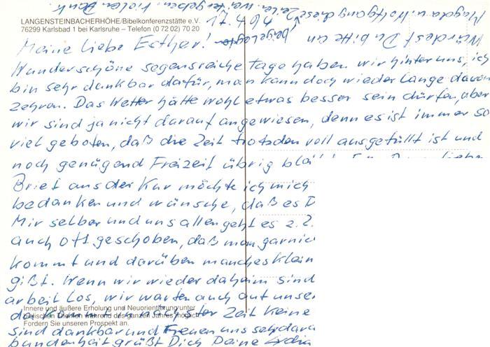 73942671 Karlsbad Karlsruhe Langensteinbacher Hoehe Bibelkonferenzstaette postalisch nicht gelaufen Erhaltung siehe scans [FriedD77] KatCode: 11110008215096