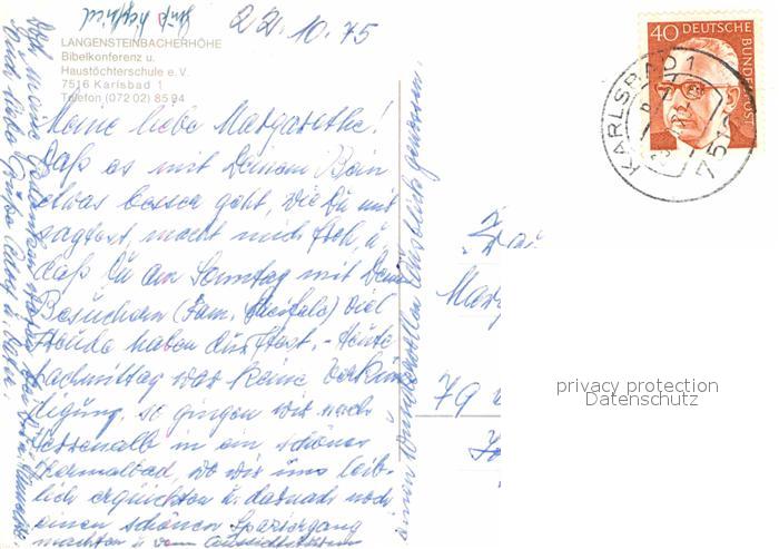 72838521 alte Postkarte Karlsbad Karlsruhe Langensteinbacherhoehe Bibelkonferenzstaette postalisch gelaufen Erhaltung siehe scans [FriedD77] KatCode: 11110008215096