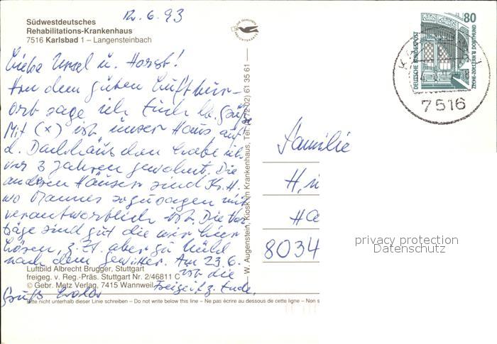 72419655 alte Postkarte Karlsbad Karlsruhe Suedwestdeutsches Rehabilisations Krankenhaus postalisch gelaufen Erhaltung siehe scans KatCode: 11110008215096