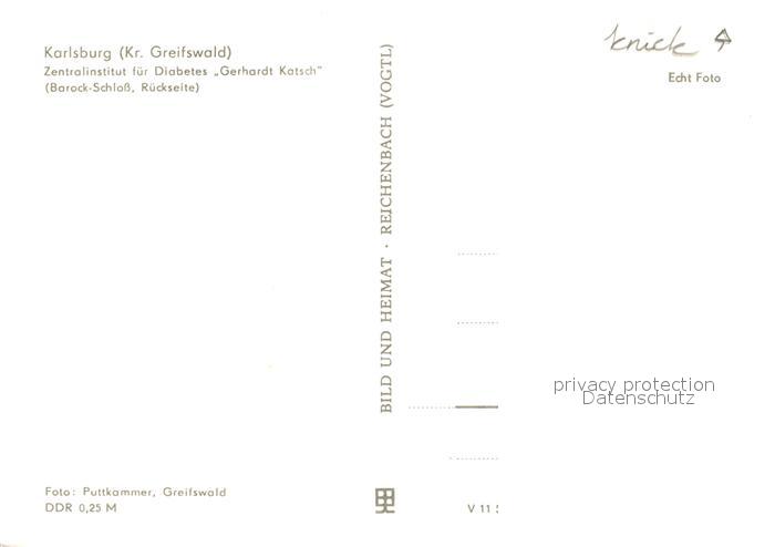 73094124 Karlsburg Greifswald Zentralinstitut fuer Diabetes Gerhardt Katsch postalisch nicht gelaufen Erhaltung siehe scans [LiesaD40] KatCode: 11110013059037