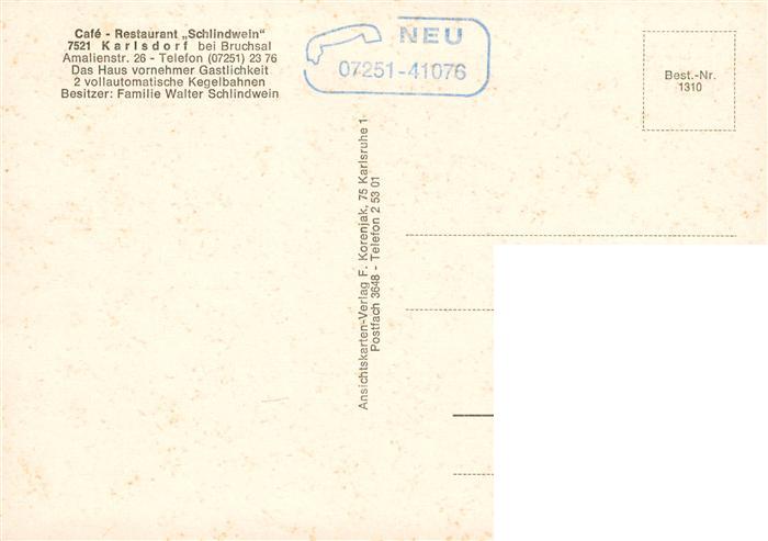 73912690 Karlsdorf -Neuthard Bruchsal Baden Cafe Restaurant Schlindwein Gastraeume postalisch nicht gelaufen Erhaltung siehe scans [WerneD78] Wern Katcode 11110008215103