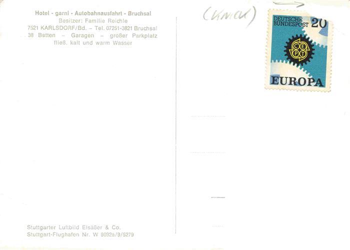 73974938 alte Postkarte Karlsdorf -Neuthard Bruchsal Baden Hotel garni Bruchsal Fliegeraufnahme postalisch gelaufen Erhaltung siehe scans [WerneD78] KatCode: 11110008215103