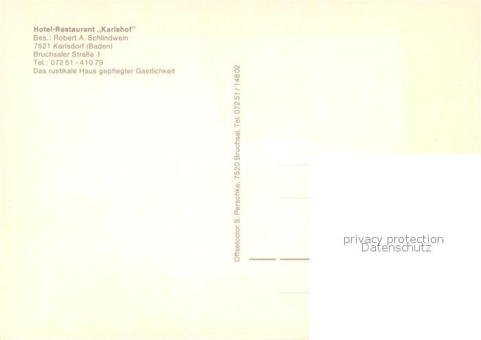 73658691 Karlsdorf-Neuthard Hotel Restaurant Karlshof postalisch nicht gelaufen Erhaltung siehe scans [FriedD77] KatCode: 11110008215103