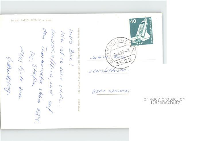 72184893 alte Postkarte Karlshafen Bad Fliegeraufnahme postalisch gelaufen Erhaltung siehe scans KatCode: 11110006633002