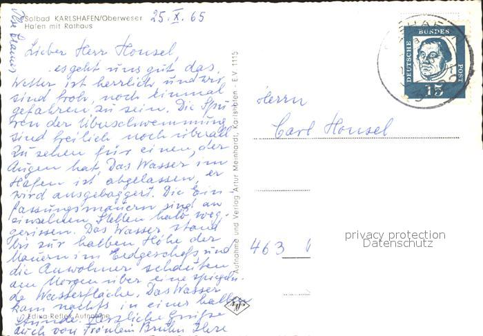 72200881 alte Postkarte Karlshafen Bad Hafen mit Rathaus postalisch gelaufen Erhaltung siehe scans KatCode: 11110006633002