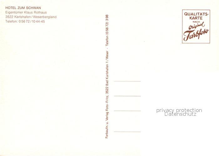 72986459 Karlshafen Bad Hotel zum Schwan postalisch nicht gelaufen Erhaltung siehe scans [WerneD78] KatCode: 11110006633002