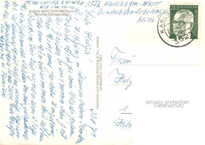 72698699 alte Postkarte Karlshafen Bad Mineral Schwimmbad Freibad postalisch gelaufen Erhaltung siehe scans [FriedD77] KatCode: 11110006633002