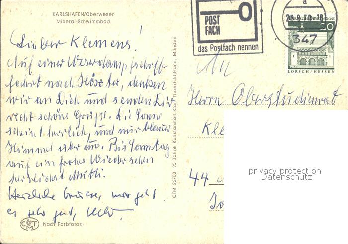 72421260 alte Postkarte Karlshafen Bad Mineral Schwimmbad Weser Bruecke Fliegeraufnahme postalisch gelaufen Erhaltung siehe scans KatCode: 11110006633002