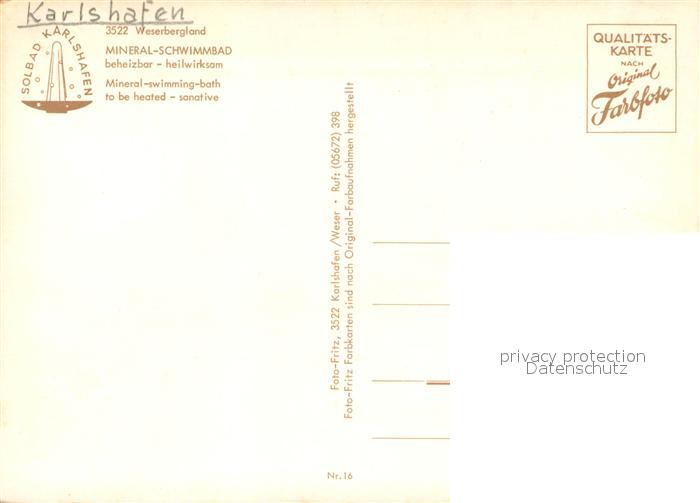 72936345 Karlshafen Bad Mineral Schwimmbad postalisch nicht gelaufen Erhaltung siehe scans [WerneD78] KatCode: 11110006633002