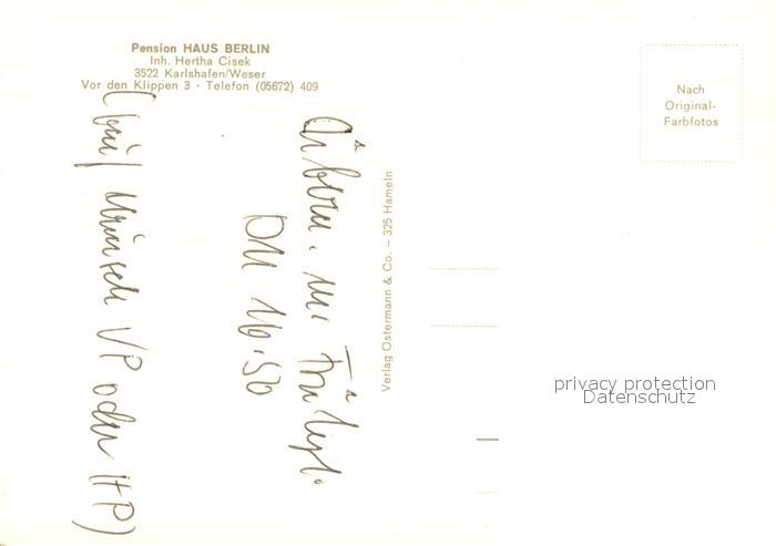 73683783 Karlshafen Bad Pension Haus Berlin postalisch nicht gelaufen Erhaltung siehe scans [LiesaD40] KatCode: 11110006633002