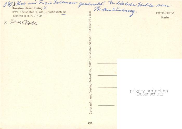 73642155 Karlshafen Bad Pension Haus Huening postalisch nicht gelaufen Erhaltung siehe scans [WerneD78] KatCode: 11110006633002