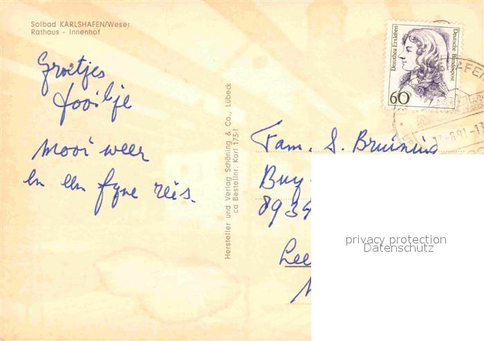 72839466 alte Postkarte Karlshafen Bad Rathaus Innenhof postalisch gelaufen Erhaltung siehe scans [FriedD77] KatCode: 11110006633002