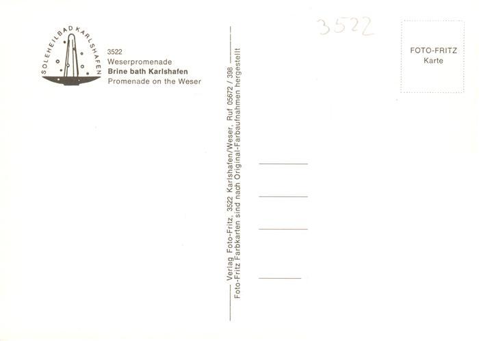 73935074 Karlshafen Bad Weserpromenade postalisch nicht gelaufen Erhaltung siehe scans [FriedD77] KatCode: 11110006633002