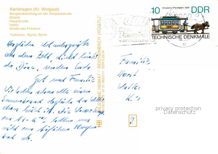 72650882 alte Postkarte Karlshagen Bungalowsiedlung Strand Hauptstrasse Hafen Strasse des Friedens postalisch gelaufen Erhaltung siehe scans [FriedD77] KatCode: 11110013059038
