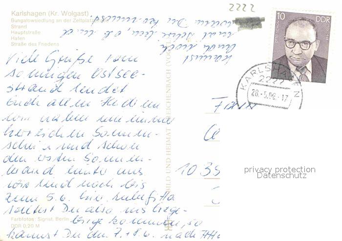 72774623 alte Postkarte Karlshagen Bungalowsiedlung Zeltplatz Strand Hauptstrasse Hafen postalisch gelaufen Erhaltung siehe scans [NatalD47] KatCode: 11110013059038