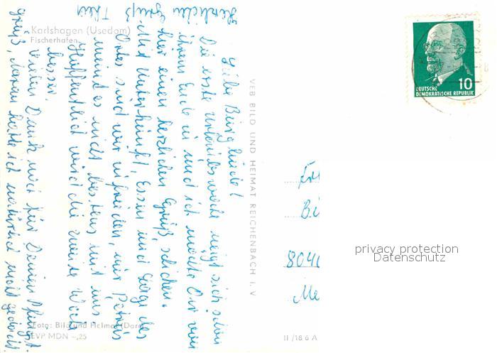 72632380 alte Postkarte Karlshagen Fischerhafen postalisch gelaufen Erhaltung siehe scans [FriedD77] KatCode: 11110013059038