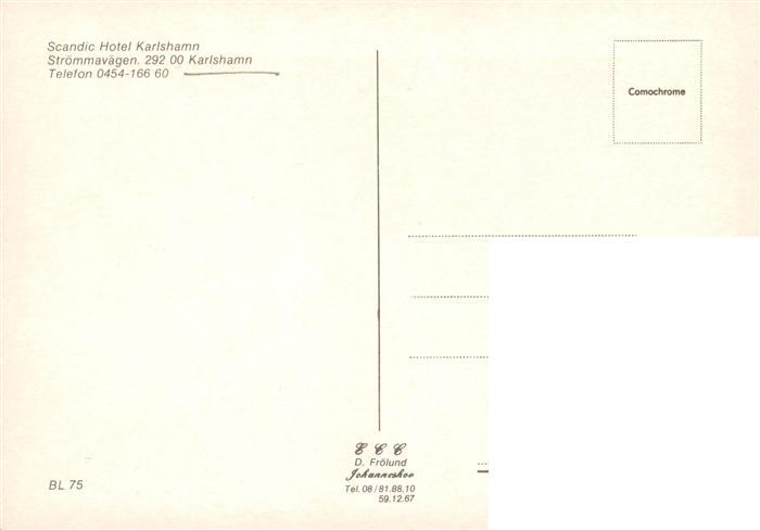 73904730 Karlshamn Sweden Scandic Hotel Restaurant postalisch nicht gelaufen Erhaltung siehe scans [FriedD77] KatCode: 11460