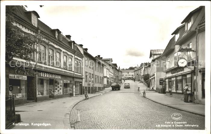 old postcard Karlskoga Kungsvaegen postalisch gelaufen Erhaltung siehe scans