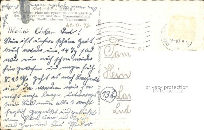 72216446 alte Postkarte Karlsruhe A. H.- Platz postalisch gelaufen Erhaltung siehe scans KatCode: 11110008212000