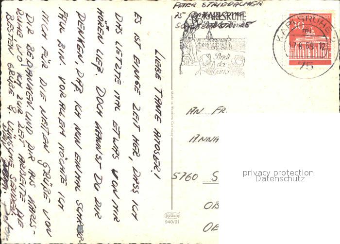 72306020 alte Postkarte Karlsruhe Baden postalisch gelaufen Erhaltung siehe scans KatCode: 11110008212000