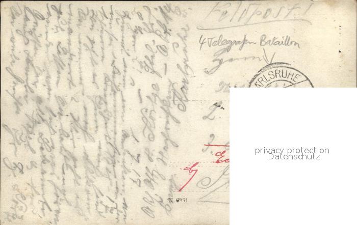 32438447 alte Postkarte Karlsruhe Baden 4 Telegraph Bataillon Portrait postalisch gelaufen Feldpost Erhaltung siehe scans KatCode: 11110008212000