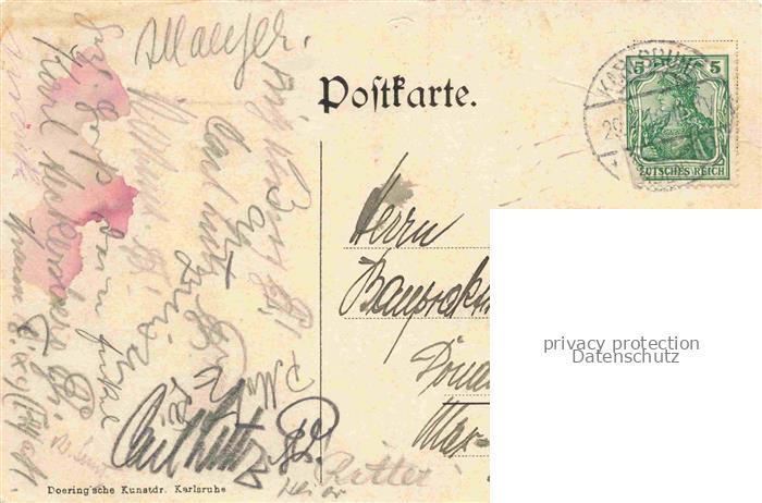 74011448 alte Postkarte KARLSRUHE Baden A.A.V. Vitruvia Studentenverbindung Gebaeude Kuenstlerkarte postalisch gelaufen Erhaltung siehe scans [FriedD77] KatCode: 11110008212000